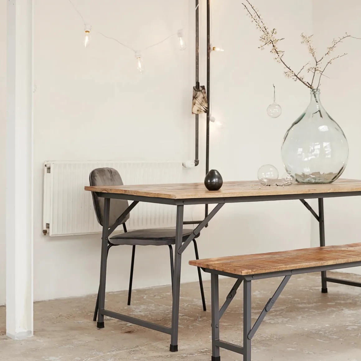 Material: Tischplatte: Mangoholz, Gestell: Eisen