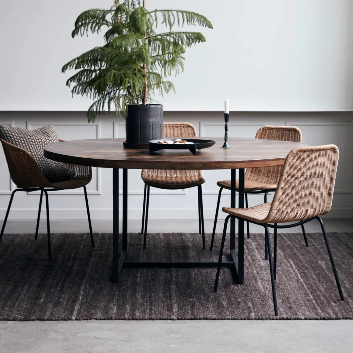 Material: Tischplatte: Mangoholz, Beine: Eisen