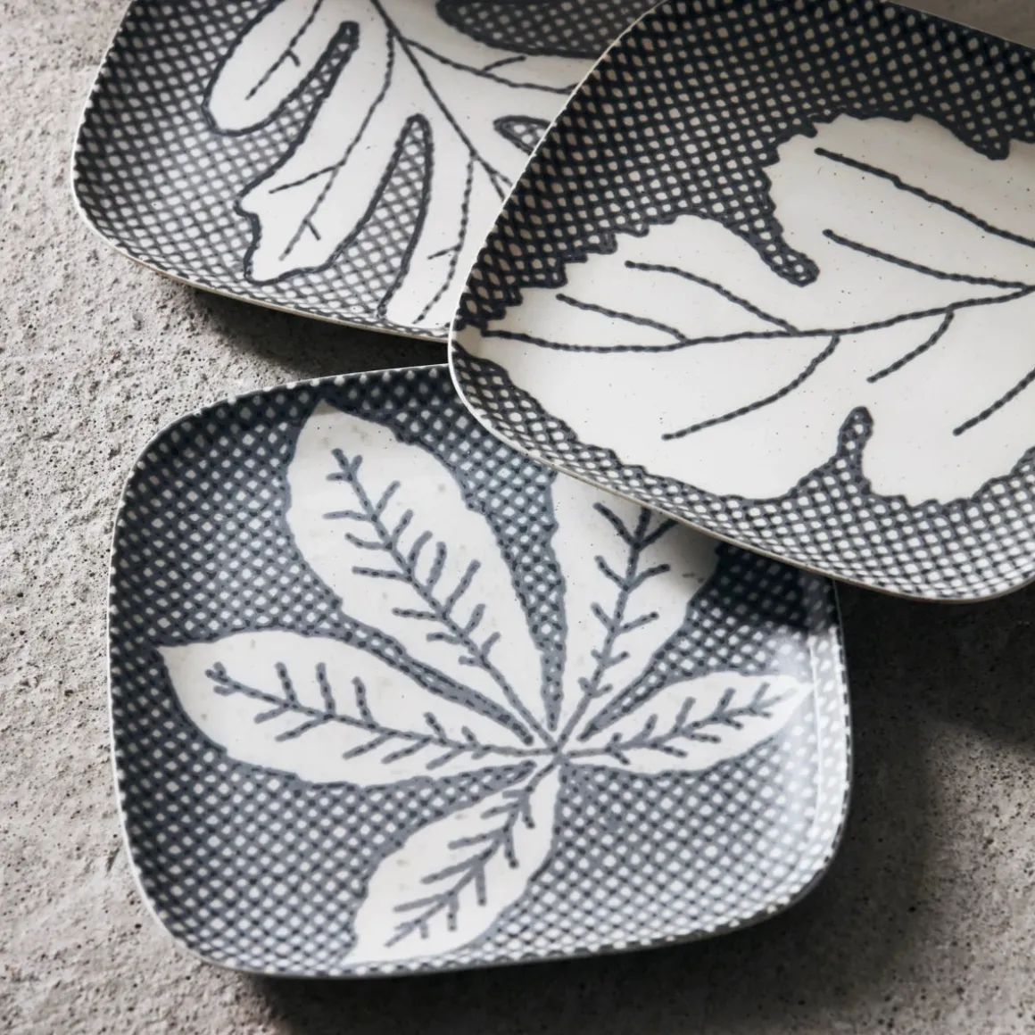 Keramikteller mit Blattmotiv. Die matten Grau- und Weißtöne passen gut zu den abgerundeten Ecken der quadratischen Form. Das Design des Chestnut-Tellers von House Doctor könnte Ihnen Retro-Vibes vermitteln. Aber das Geheimnis liegt darin, wie Sie es verwenden und womit. Kombinieren Sie es mit unseren anderen Blattmotiv-Tellern oder mischen Sie es mit Tellern aus anderen Materialien und gedeckten Farben für ein ganz persönliches Tischarrangement. Es ist sicherlich eine Möglichkeit, ein Gefühl für die Natur zu vermitteln