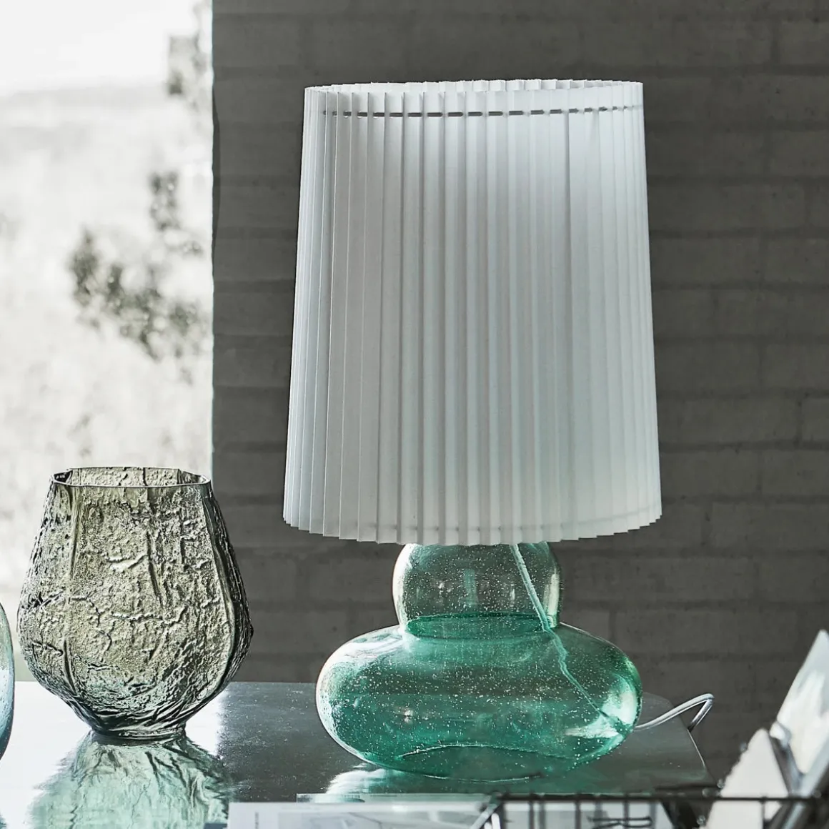 Material: Glas, Stoff, Eisen