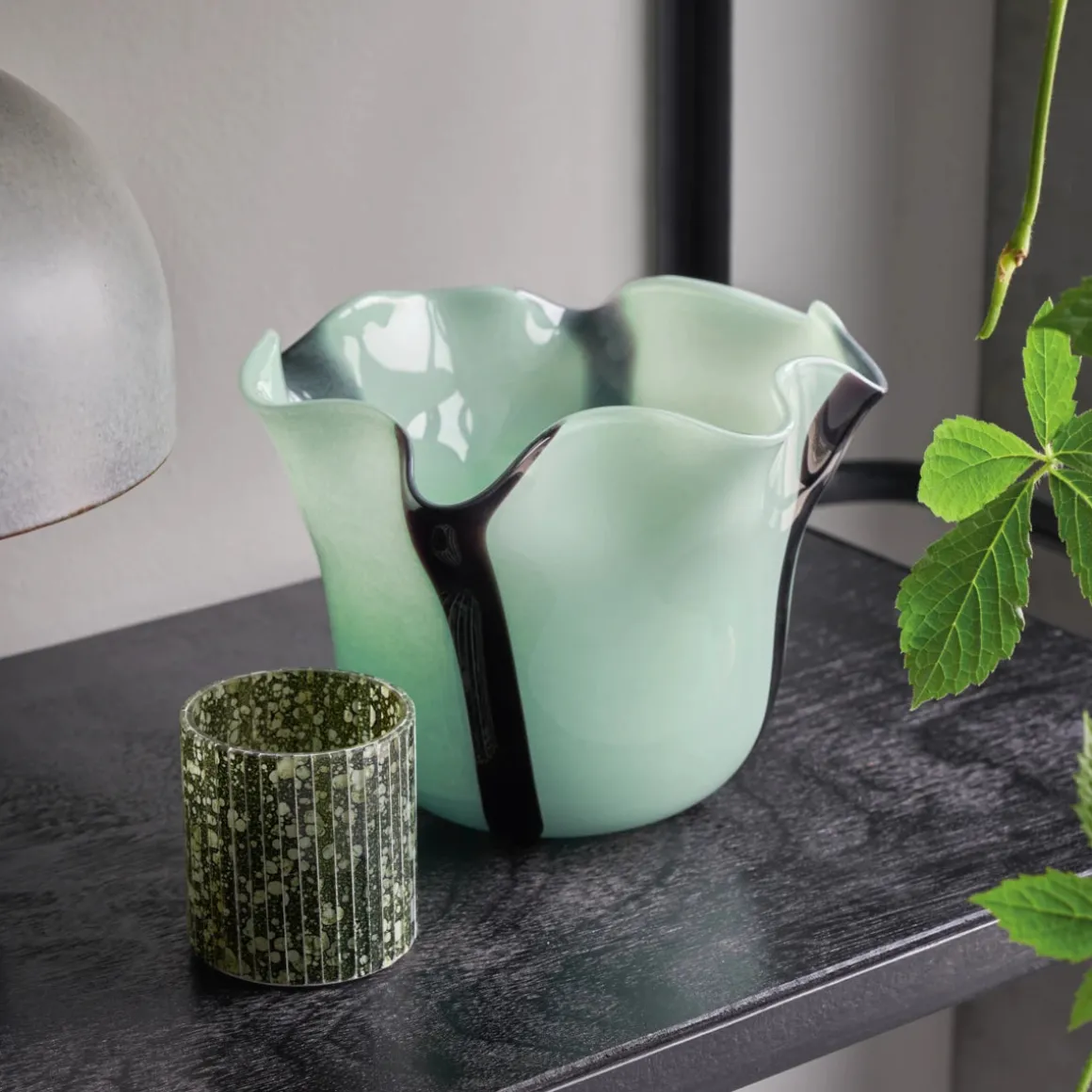 Organic, soft shapes and a striking colour come together in this striped glass vase from House Doctor. Mouthblown and handmade, the vase is one of a kind and injects a dash of colour and charm into your home. Highlight its asymmetry on a console table or shelf, alone or with decor in similar shades of green for a lasting impression.