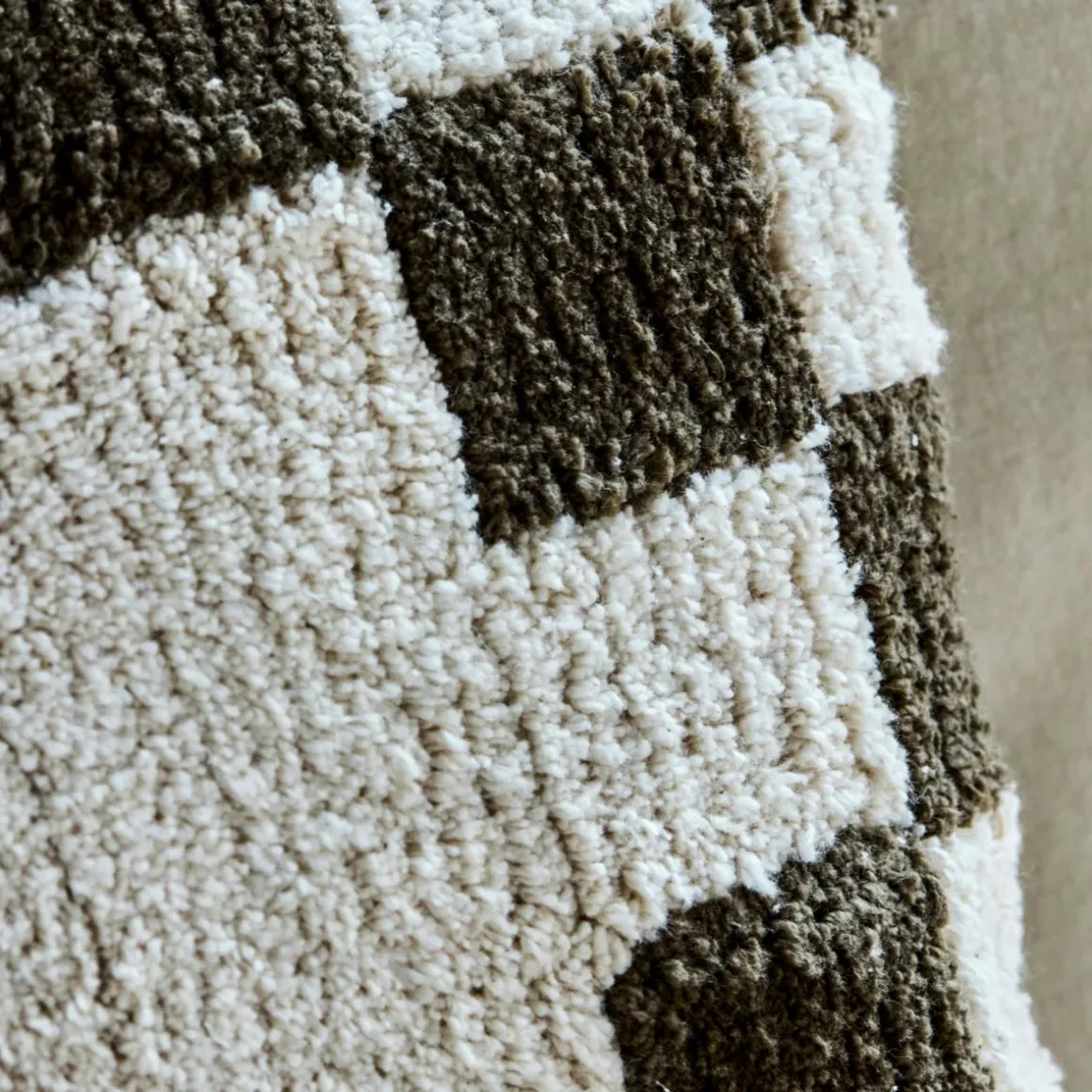 Das markante Schachbrettmuster entlang des Randes verleiht dem Design eine lebendige Note und bringt Struktur auf Ihr Sofa oder Bett.