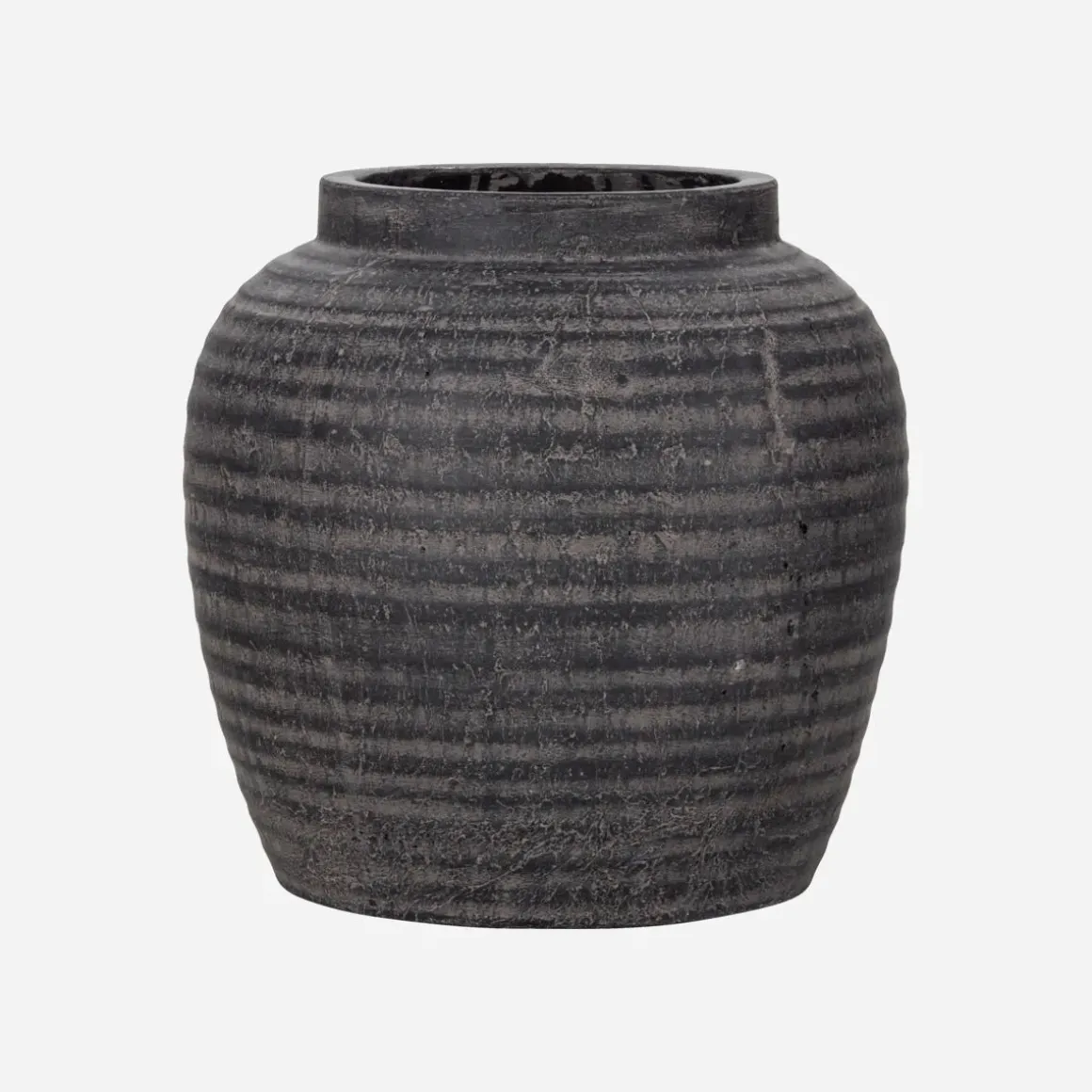 Add dimension and texture to your home decor with this versatile planter. The design from House Doctor comes with a lightly rippled finish and a dark colour for depth and versatility no matter where you place it. With or without a plant or stems, it gives your home a calm and contemporary vibe. Place it on your floor, a side board or console table to give your space subtle detailing and a natural touch. This handmade planter has a rustic look and is porous. For this reason, an insert is included to protect the underlying surface.