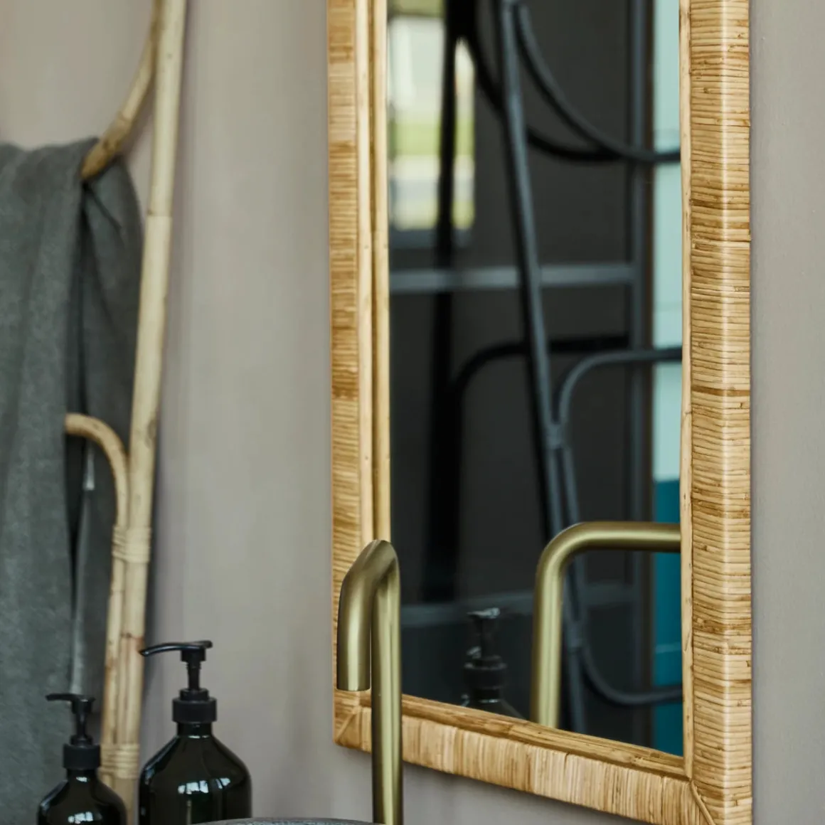 Material: Glass, Rattan, Mango Wood, MDF