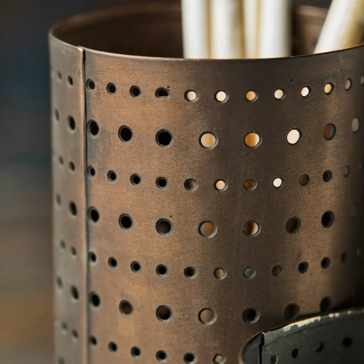 Decorate and organise your desk with this set of 3 holders from House Doctor. From your pens and pencils to clips, scissors and brushes, they gather your office supplies in a stylish way thanks to the brass finish and cut-outs. If and when you want to redecorate and mix it up a bit, use the holders as tealight holders or decor.