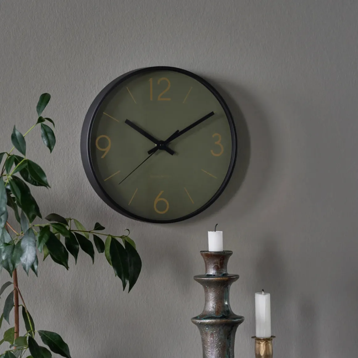Add a relaxing and casual touch to your home decor with this round wall clock from House Doctor. Its dark green comes together with the golden numbers and the black frame to give you a design that blends in with any interior style. Hang it on your kitchen wall or in your living room among your posters and wall art. Wherever you need to be able to tell time.