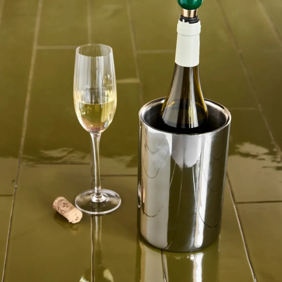 Der silberfarbene Edelstahl mit seinem glänzenden Finish sorgt für einen raffinierten Akzent im Esszimmer oder auf dem Wohnzimmertisch. Das minimalistische Design passt zu jedem Interieur und hält Wein perfekt gekühlt – egal ob bei Abendessen mit Freunden, an der stilvollen Hausbar oder beim entspannten Brunch. Kombinierbar mit weiterem Barzubehör, um Ihre Einrichtung abzurunden.– Hochwertiger Edelstahl